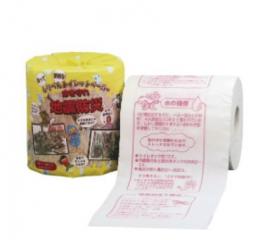 103×103×114mm(裸)、紙幅114mm、長さ30m2枚重ね、白地に地震防災にまつわる内容をプリント