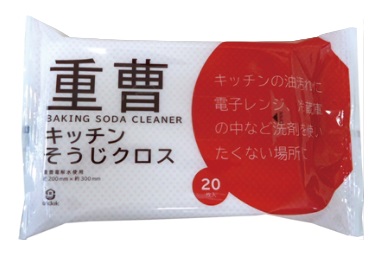 200×130×30mm(裸)、重曹電解水を使ったお掃除シートです。